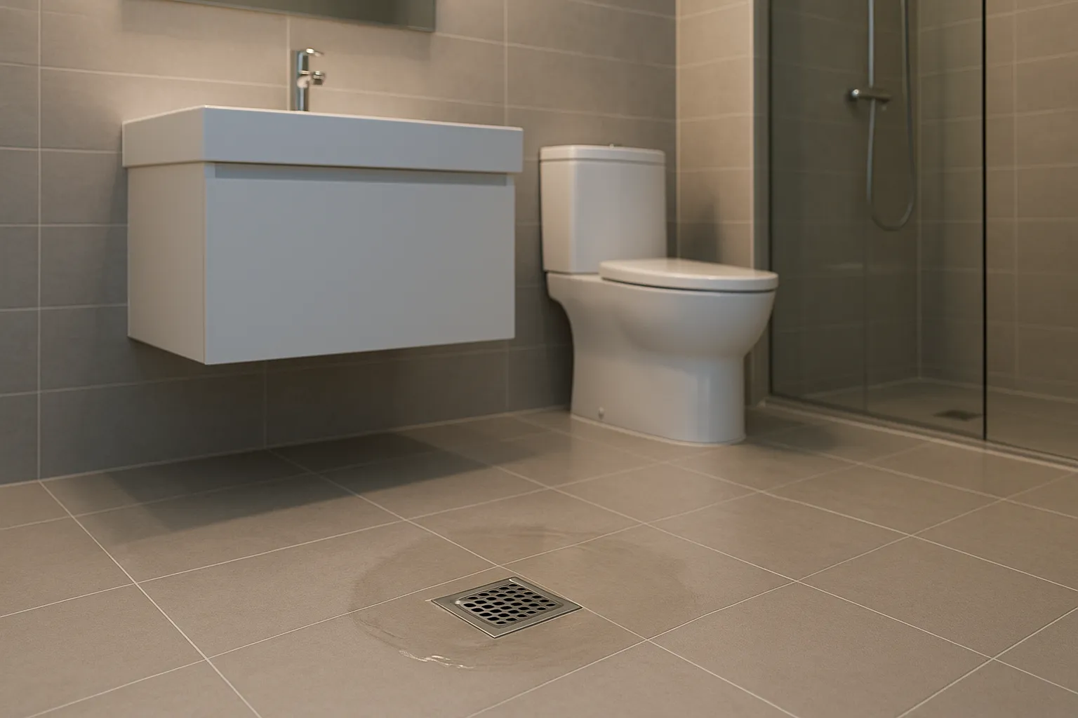 비 오는 날 하수구 역류로 욕실 바닥에 물이 찬다